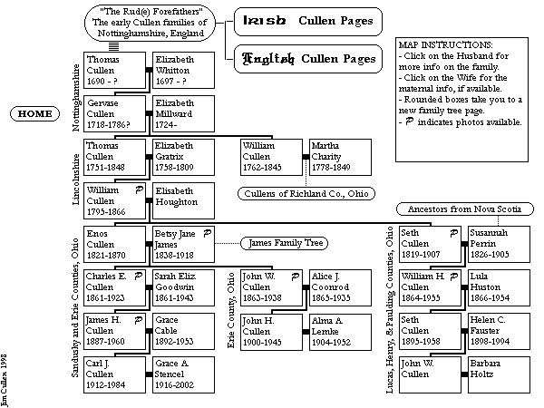 William Cullen's line came to the US a decade or so before Enos and Seth Cullen. William's family settled in the Mansfield area, which is just a short distance south of Erie Co., where my family settled. It is not known whether these early Cullen families knew of each other or of their common family ties back in England.