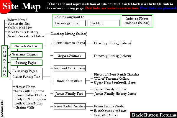 Search The Cullen Genealogy Homepage with the HotBot Internet Search Engine!Note: When you enter your search and arrive at HotBot's site, you will only see one matching page from my site along with the description of the page. Below the description you will see a link which says: "See Results From This Site Only"". Click on that link to see the complete set of pages on my site that matches your search. This problem will be corrected as soon as I figure out the proper script changes!