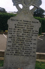 For more information on this family, visit The Cullen Geneological History Page The site, run by Rob Cullen, of Onehunga, Auckland, New Zealand, concerns the descendants of James Cullen (b.1885 Bannow, d.1968) and Bridget Jones (1890-1974). James Cullen's father was also named James. Descendants are located today in Co Wexford and in New Zealand. Also on the site is a much better image of the above stone. | |
